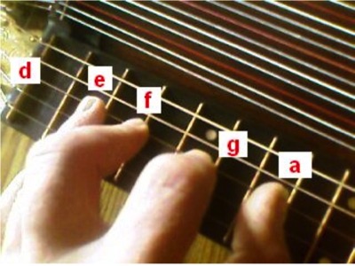 Alle gespielten Finger bleiben so lange liegen, wie wir auf dieser Saite spielen. Während wir den letzten Ton der C - Saite anschlagen, wechselt der 4. Finger auf die G-Saite und die anderen Finger gehen über den Tönen "in Lauerstellung", damit sie nur noch gesenkt werden müssen. Das verhindert Wartezeiten und ermöglicht einen rhytmisch kontinuierlichen Melodieverlauf...dazu auf der nächsten Seite in Video...