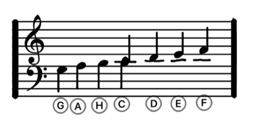 a) Melodie im Violinschlüssel (G-Schlüssel) und